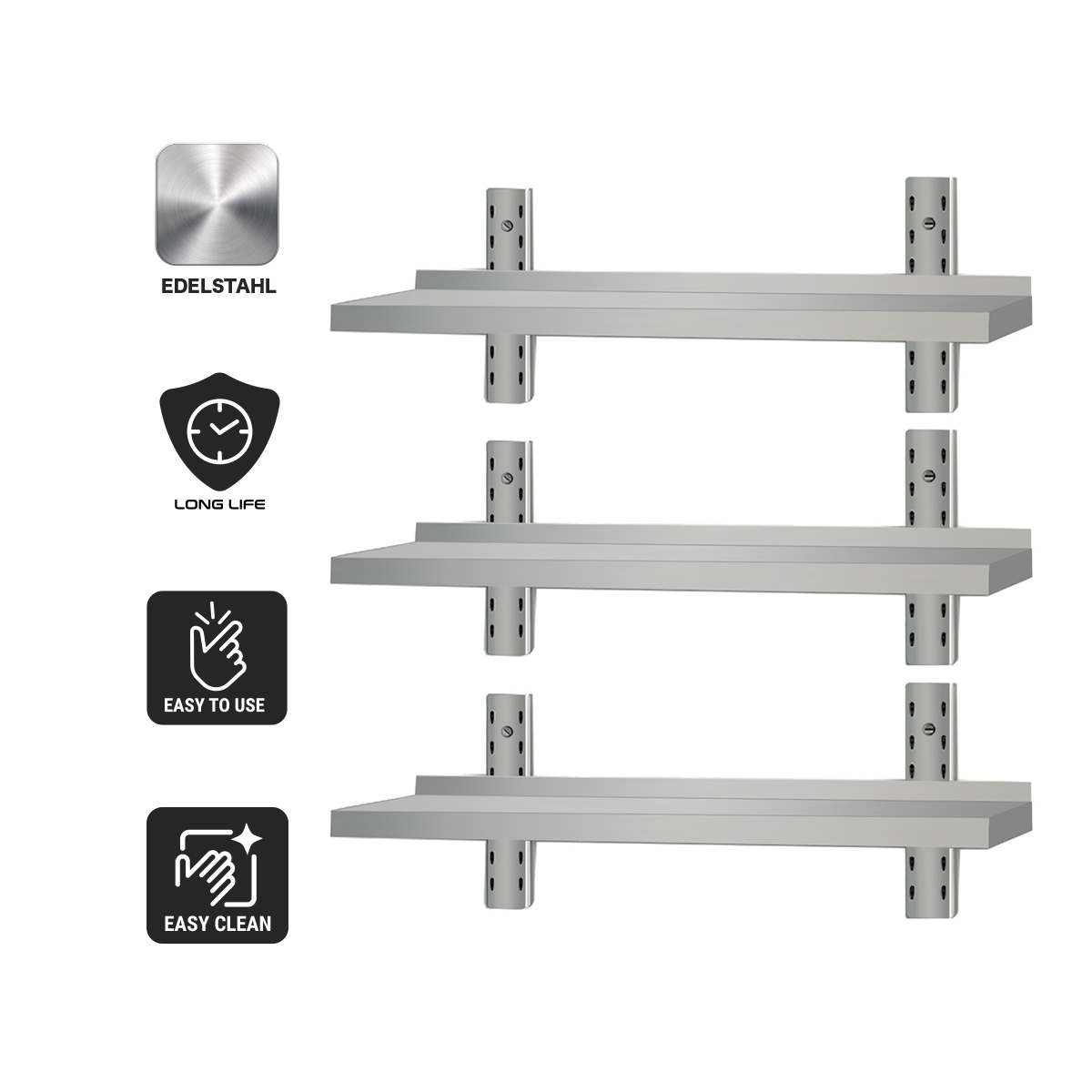 Roostevaba seinariiul ECO – 800x400mm – 3 tasapinda [WBK84#3#ECO]